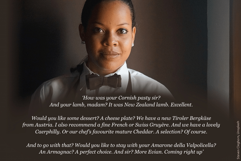 Part 1 is the basics. Part 2 looks beyond that at policy. Meanwhile the waitress above mentions 10 types of food and drink. How many are geographical indications? The answer is in Part 3 at the end.